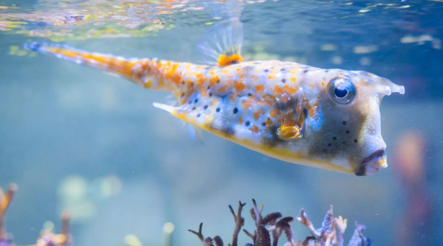 Zijn voeding bestaat uit kleine ongewervelden die op de bodem leven, algen en sponzen. Hij blaast op het zand om zijn prooien te detecteren.